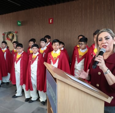 Como parte de las actividades decembrinas, el Voluntariado del Congreso del Estado llevó a cabo el Concierto Especial Navideño, con la participación del Coro Infantil de 30 voces, dirigidos por el pianista Enrique Castillo Reyes, quienes interpretaron villancicos de diferentes partes del mundo para las personas que se dieron cita en el lobby de la sede del Poder Legislativo. Durante este evento, la titular del Voluntariado del Congreso del Estado, Minerva García Chávez, señaló la importancia de estas fechas para fortalecer la convivencia, los valores culturales y promover el espíritu navideño entre la ciudadanía y el personal del Congreso. En esta actividad se contó con la presencia del director general del Instituto Iberia, Juan José Galván, y el Secretario General del Congreso, Julio Leopoldo de Lara Valera.