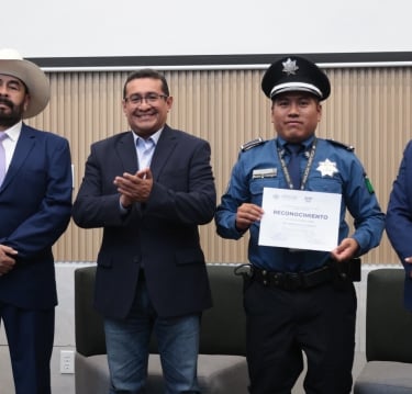 Como una muestra de gratitud a la labor de las y los policías, el presidente de la Junta de Gobierno y Coordinación Política del Congreso del Estado, Pavel Gaspar Ramírez, realizó la entrega de reconocimientos a elementos adscritos a la Seguridad Pública Estatal, Turística, Preventiva y de Bomberos. “Lo que cada uno de ustedes representa es de gran importancia para la sociedad”, mencionó el legislador al enfatizar que la seguridad es un tema prioritario para los diferentes niveles de gobierno. Por ello, destacó el compromiso de quienes velan por la tranquilidad de las y los ciudadanos. Pavel Gaspar pidió a las y los elementos que prioricen valores como la solidaridad y la empatía, además de ponerse del lado de las personas y fortalecer su conexión con ellas. En su intervención, los funcionarios del organismo Convenciones y Parques, Roberto Bautista Lozano y Óscar Rigoberto Benítez López, coincidieron en que la labor de cada uno de los elementos ha sido fundamental para garantizar la seguridad de las y los visitantes a eventos masivos, así como de los diferentes edificios públicos. ES LA PRIMERA VEZ QUE RECIBEN ESTE RECONOCIMIENTO Tras recibir su reconocimiento de manos del presidente de la Junta de Gobierno y Coordinación Política, Pavel Gaspar, así como de los funcionarios de Convenciones y Parques, Roberto Bautista Lozano y Óscar Rigoberto Benítez López, dos elementos expresaron que es la primera vez que son galardonados. “Es la primera vez que recibo este reconocimiento, me siento muy contenta, muy feliz, sobre todo porque reconocen el trabajo que hacen todos mis compañeros de la policía turística”, señaló Gizel García Jiménez. “Vengo de Tehuacán. Es la primera vez que tenemos el honor de estar aquí y muy felices de recibir este reconocimiento. Cada día que salimos a la calle tratamos de dar lo mejor como policías, representar a la Policía Estatal Turística es un honor. Este reconocimiento se lo dedico a mi familia y a la institución; siempre contamos con el apoyo de nuestra directora y de toda la institución”, indicó José Cruz Durán.