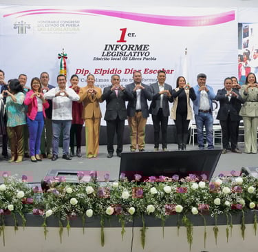 El diputado local por el distrito 5 con cabecera en Libres, Elpidio Díaz Escobar, presentó su Primer Informe Legislativo, donde destacó que transformó compromisos en realidades siendo un legislador de territorio, porque la política debe servir para transformar la vida de las familias poblanas. En el municipio de Libres, Díaz Escobar destacó que con el respaldo de la gente ha trabajado en el Congreso del Estado, pero también ha recorrido los 11 municipios que conforman su distrito para escuchar, atender y hacer gestiones que mejoren la calidad de vida de las personas. El también integrante de la Junta de Gobierno y Coordinación Política del Poder Legislativo detalló que en su primer año como legislador presentó 12 iniciativas y siete puntos de acuerdo, además de que con el apoyo de sus homólogos ha impulsado propuestas en beneficio de las y los poblanos. Destacó que con recursos propios ha entregado apoyos a escuelas de su distrito y con el respaldo del gobierno del estado se llevaron a cabo obras, a través del programa Por Amor a Puebla. En ese sentido detalló que con los Comités de Obra ha realizado acciones como pavimentaciones y obras de alto impacto, todo con el manejo adecuado de los recursos, sin corrupción y con transparencia. En el evento, el presidente de la Junta de Gobierno y Coordinación Política del Congreso del Estado, Pavel Gaspar Ramírez, y la secretaria de Bienestar, Laura Artemisa García Chávez, reconocieron los resultados alcanzados por el diputado Elpidio Díaz.